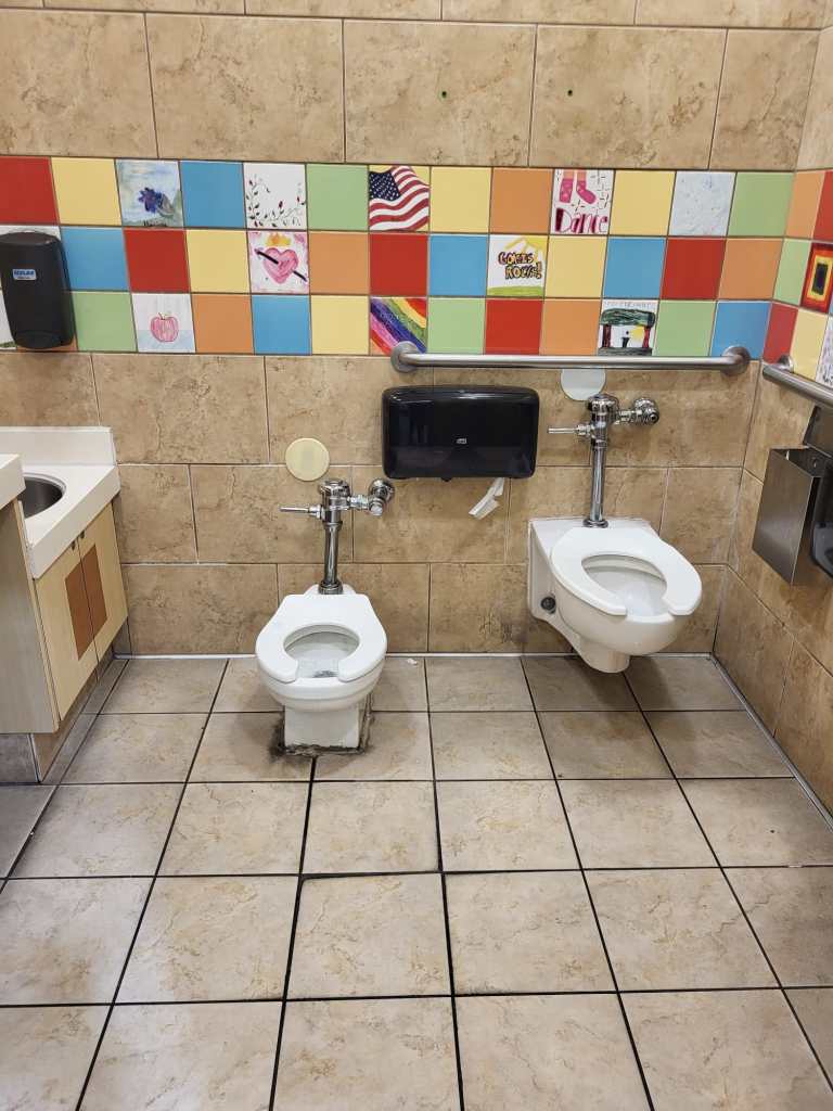 We made many stops along the route, including at the famous Buc-ees, but my favorite was a TA Travel Center in Brunswick, GA. This place had everything a road tripper could possibly want. When we first walked in, it looked like any other gas station market; aisles of chips, candy, and jerky, and large refrigerator cases stocked with beverage options. There was a family restroom with an adorable mini toilet and mini sink, but the main restrooms were out of order. A sign said there were more located on the “fuel side.”