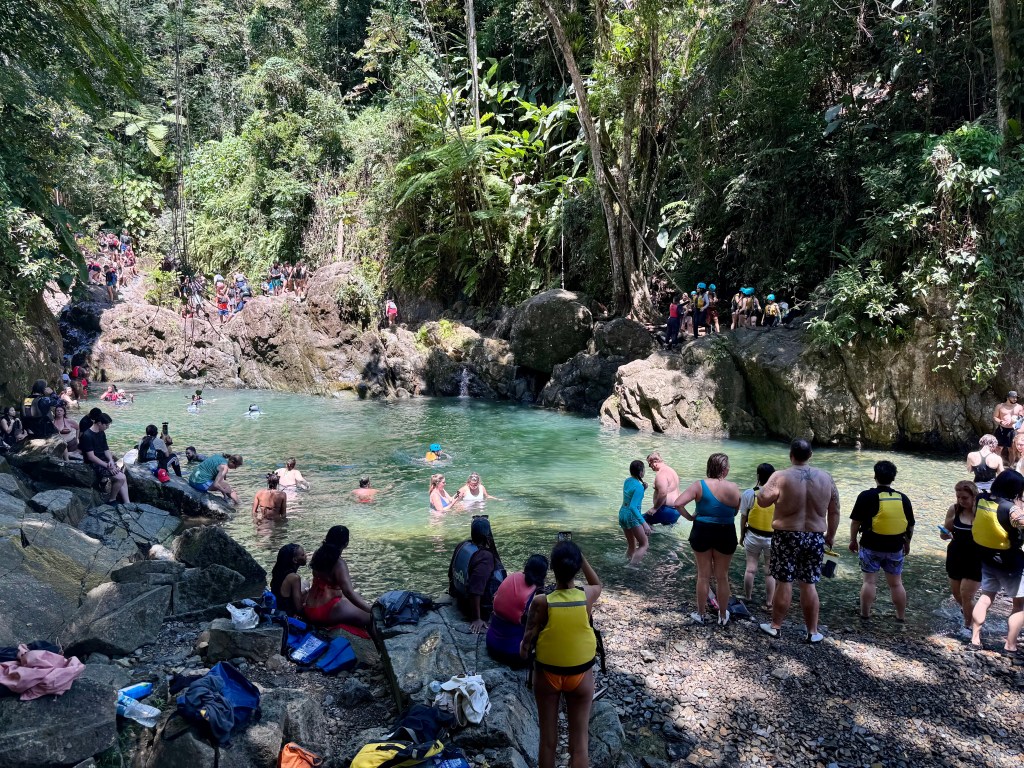 On Sunday I joined a group tour to El Yunque National Forest, the only tropical rainforest in the U.S. National Forest System. We hiked about a mile to a swimming hole packed with families and college students on spring break. Our guide, a young woman named Sofi, who was so agile she somehow managed to be at both the front and the back of our group of 17 hikers, offered to take us about 10-minutes farther to a natural water slide, cliff jump, and rope swing. I decided to go for it. How often am I in a rainforest? I slid, jumped, and swung, despite my terror. It was exhilarating and confidence-boosting.