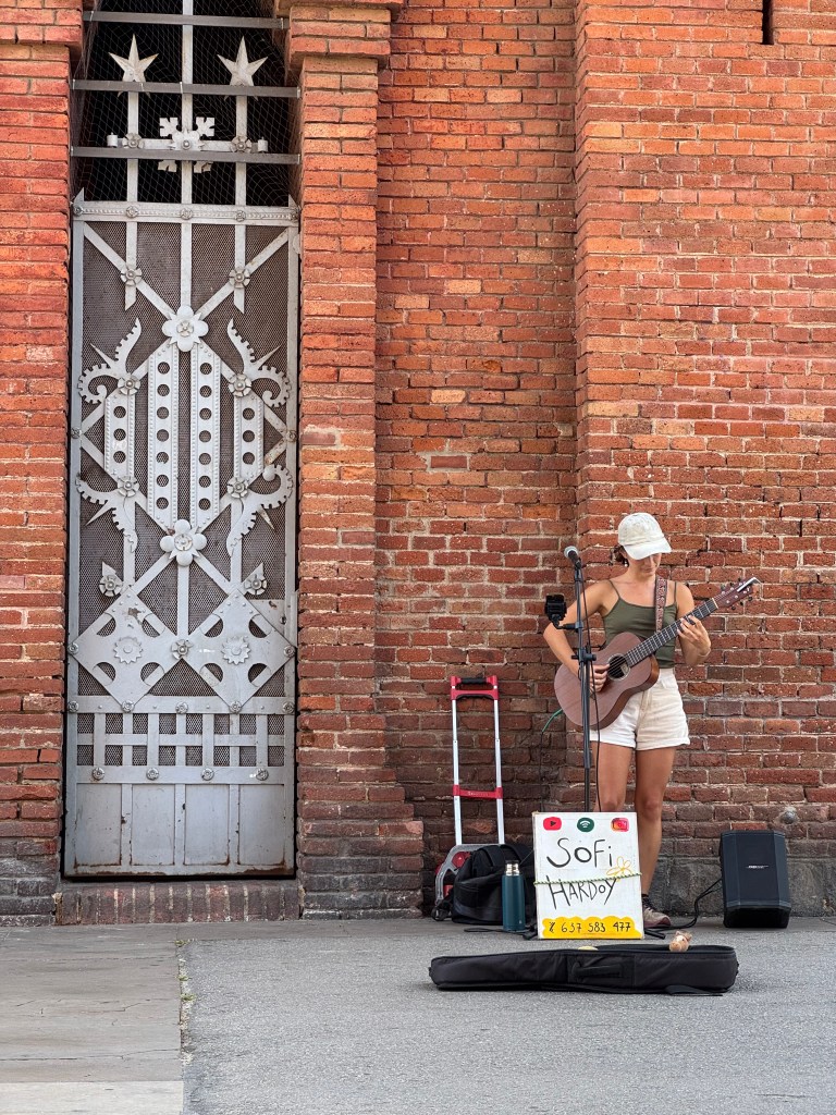 The weather today is absolutely beautiful, and the walking tour was really nice. I went to a cafe recommended by the tour guide, only to run into two ladies from the tour who kindly invited me to join them. Then I walked to a food market and stopped at a local restaurant for some delicious tapas. On my walk back to the hostel I stopped to listen to a talented street musician for nearly an hour. Now I’m writing this post before tackling a couple hours of work that I need to finish this week.