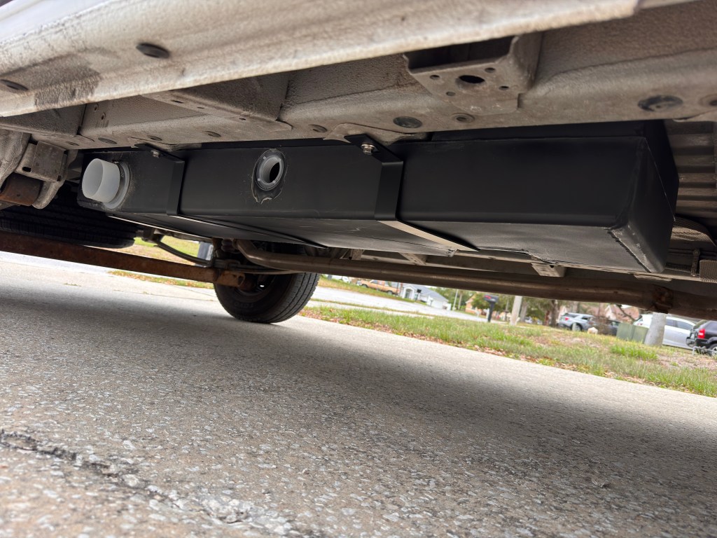The undermount gray water tank arrived last week and I will admit, I was a bit intimidated. For one thing, working under a vehicle is not something I have a lot of experience with. Until Carey showed me how to do an oil change on my old Subaru a couple years ago, I’m not sure I’d ever even been under a vehicle. Now along comes a project that involves many hours of sub-vehicle effort.